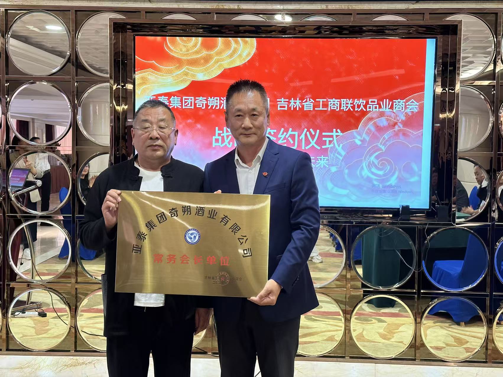 簽約儀式後,吉林省工商聯飲品業商會負責人為快色视频软件酒業頒發 “常務會長單位” 牌匾,正式授予其常務會長單位身份。這一授位不僅是對快色视频软件酒業在吉林飲品行業實力與口碑的認可,更意味著快色视频软件將深度參與商會行業規劃、資源整合等工作,為本地飲品產業高質量發展貢獻力量,而這份 “行業責任”,也與亞泰集團 “百日大戰” 中 “深耕本地、攻堅突破” 的理念高度契合。